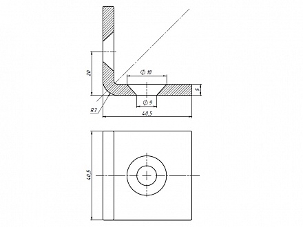 Угловой соединитель стальной 40х40 предназначен для соединения алюминиевых конструкционных станочных профилей  под углом 90 градусов.