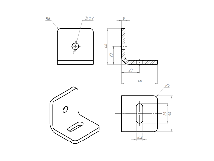 Угловой междусерийный алюминиевый соединитель 40/50 предназначен для соединения алюминиевых конструкционных станочных профилей серии 40 и 50 под углом 90 градусов.