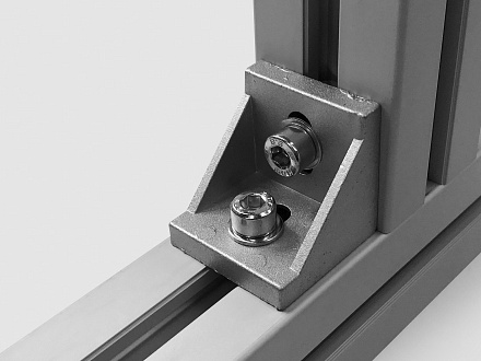 Угловой алюминиевый соединитель 45х45 предназначен для соединения алюминиевых конструкционных станочных профилей под углом 90 градусов.