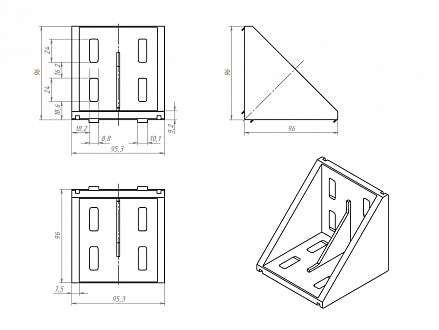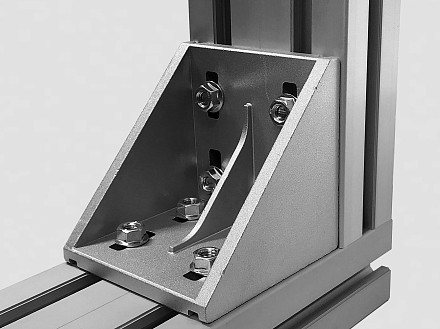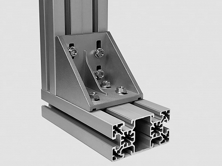 Угловой соединитель стальной 100х100 предназначен для соединения алюминиевых конструкционных станочных профилей под углом 90 градусов.