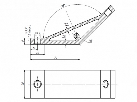 Угловой алюминиевый соединитель 70х70х40 предназначен для соединения алюминиевых конструкционных станочных профилей 50-ой серии под углом 135 градусов.