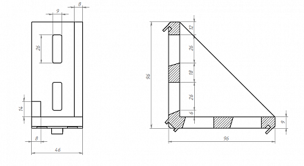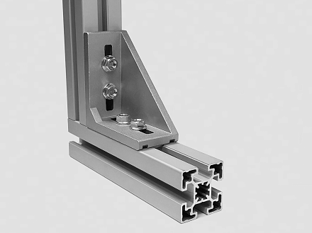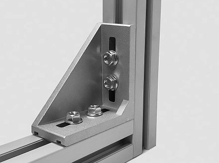 Угловой соединитель стальной 50х100 предназначен для соединения алюминиевых конструкционных станочных профилей под углом 90 градусов.