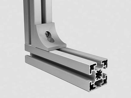 Угловой алюминиевый соединитель 50х50 предназначен для соединения алюминиевых конструкционных станочных профилей под углом 90 градусов.
