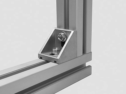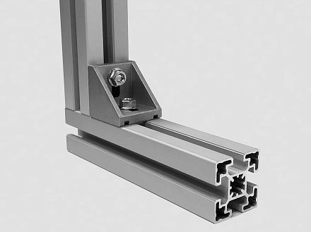Угловой соединитель стальной 50х50 предназначен для соединения алюминиевых конструкционных станочных профилей под углом 90 градусов.