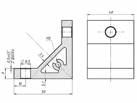 Угловой алюминиевый соединитель 50х50х40 предназначен для соединения алюминиевых конструкционных станочных профилей 50-ой серии под углом 90 градусов.