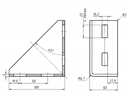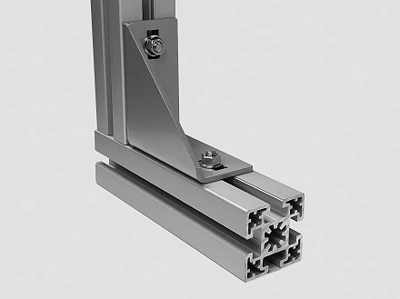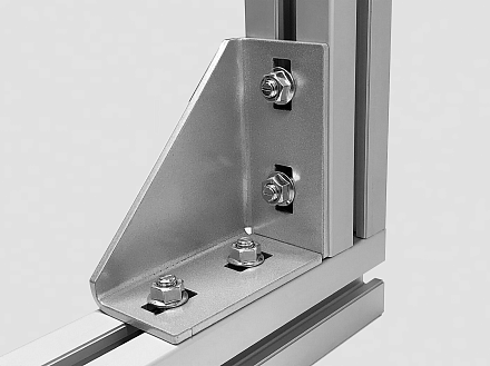 Угловой соединитель стальной 50х100S предназначен для соединения алюминиевых конструкционных станочных профилей под углом 90 градусов.