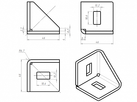 Угловой соединитель стальной 50х50 предназначен для соединения алюминиевых конструкционных станочных профилей под углом 90 градусов.
