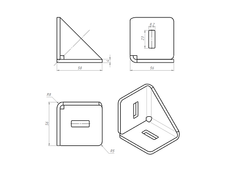 Угловой соединитель стальной 60х60 предназначен для соединения алюминиевых конструкционных станочных профилей серии 60 под углом 90 градусов.