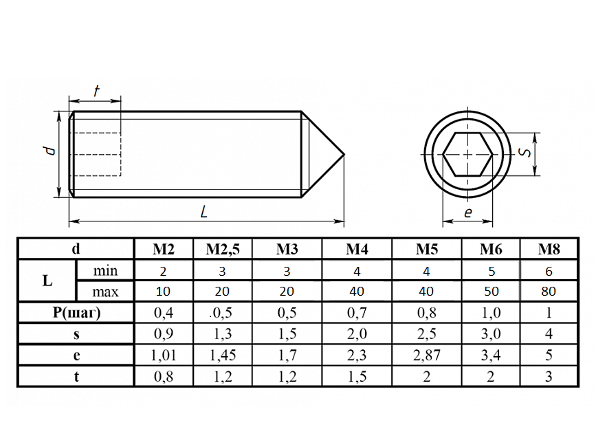 Винт установочный DIN 914 M3x8, A666 Арт. A666