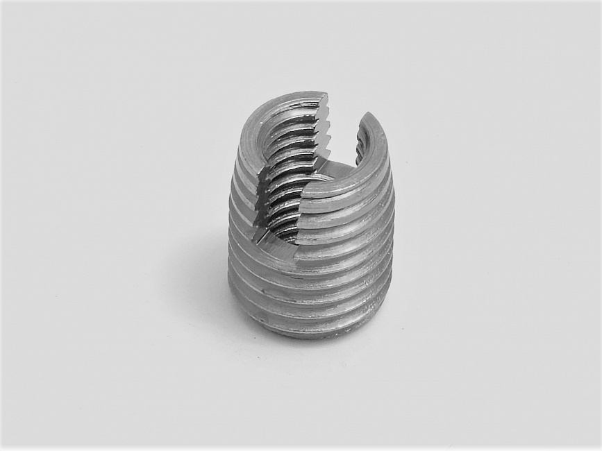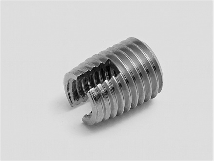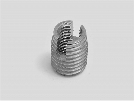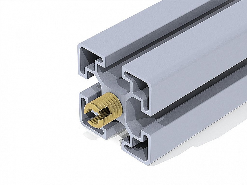 Крепёжное изделие используется для образования резьбового отверстия с резьбой М8х1,25 в торце профиля. В изделии используется основной шаг внутренней и нестандартный шаг 1,5 мм внешней резьбы.