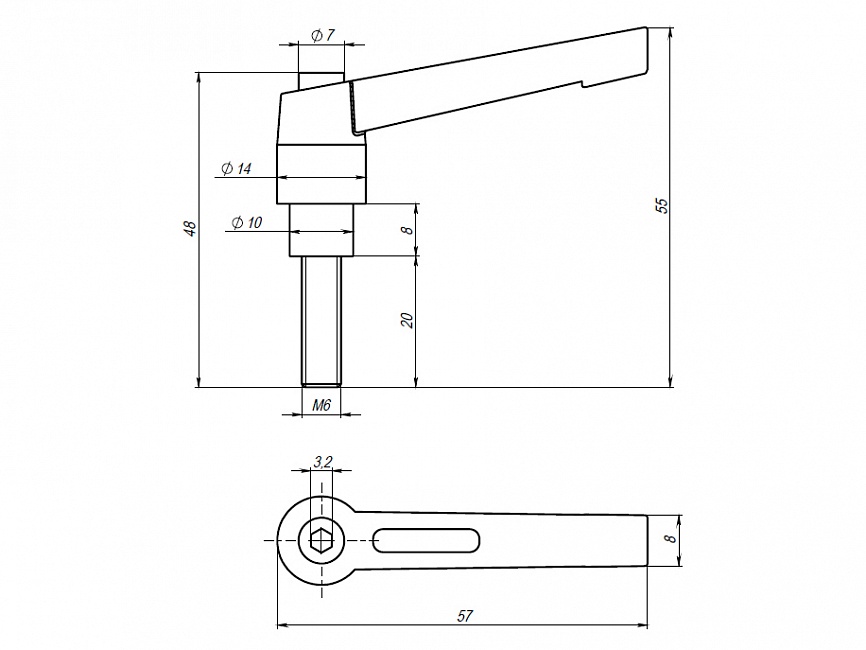 Для закручивания и откручивания винта можно использовать как шестигранную головку, так и рукоятку, что очень удобно при подвижных соединениях