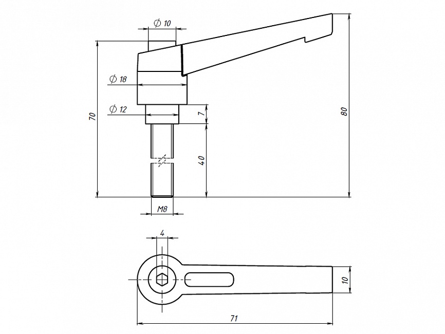 Для закручивания и откручивания винта можно использовать как шестигранную головку, так и рукоятку, что очень удобно при подвижных соединениях