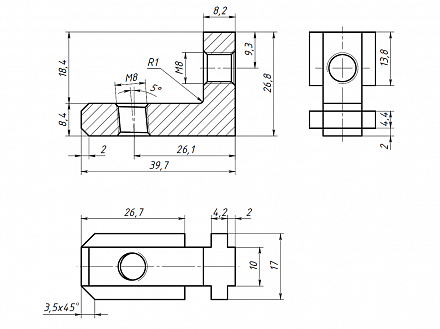 Внутренний угловой соединитель 10-А предназначен для соединения алюминиевых конструкционных станочных профилей под углом 90 градусов.