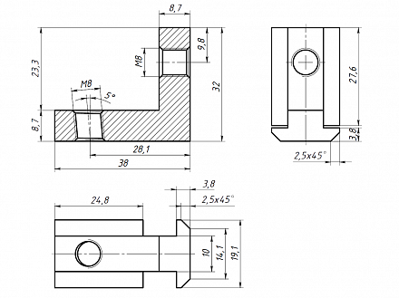 Внутренний угловой соединитель 10-А предназначен для соединения алюминиевых конструкционных станочных профилей под углом 90 градусов.