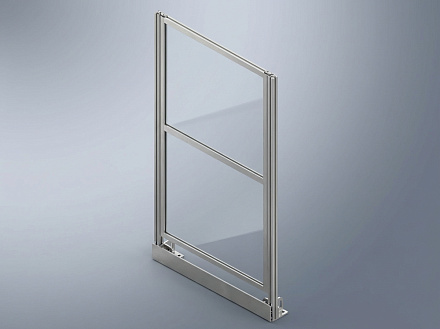 Размер секции 1400×1250 мм, вставка из оргстекла. Материал в 10 раз прочнее обычного стекла при меньшем весе. Оргстекло не проводит тепло и снижает шум. Секция идеальна для остекления лестниц и антресолей.