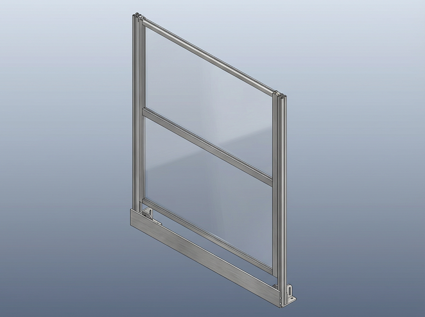 Секция 1800×1250 мм комплектуется вставкой из оргстекла. Оргстекло сохраняет прозрачность и не запотевает. Вставка безопасна при ударах — не образует острых осколков. Используется в торговом оборудовании и офисных перегородках.