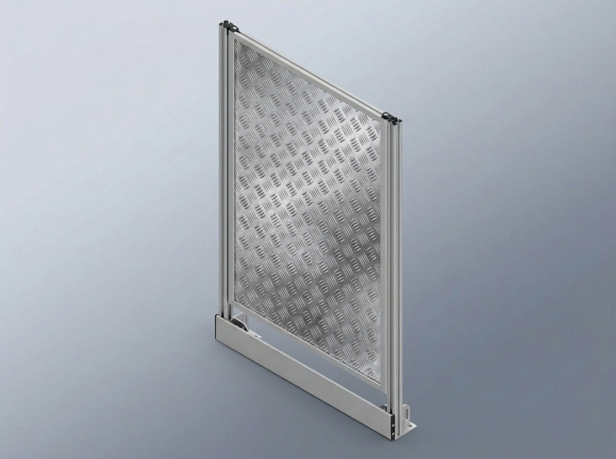 Секция размером 1400×920 мм с вставкой из алюминиевого листа. Вставка отличается равномерной толщиной и стабильной формой. Рисунок на поверхности добавляет материалу эстетики. Это решение для средних и крупных проемов.
