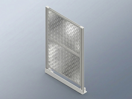 Размер секции 1800×1250 мм, вставка — алюминиевый лист. Лист имеет декоративный рисунок и жесткую структуру. Алюминий сохраняет свойства при интенсивной эксплуатации. Секция предназначена для масштабных сборных систем.