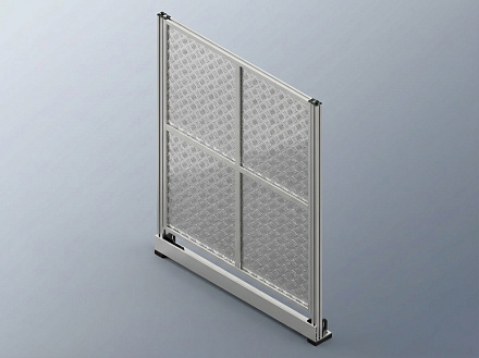 Секция 1800×1500 мм комплектуется вставкой из алюминиевого листа с рисунком. Вставка обеспечивает большую площадь перекрытия без потери прочности. Материал пожаробезопасен и экологичен. Это решение для панорамных или технических модулей.