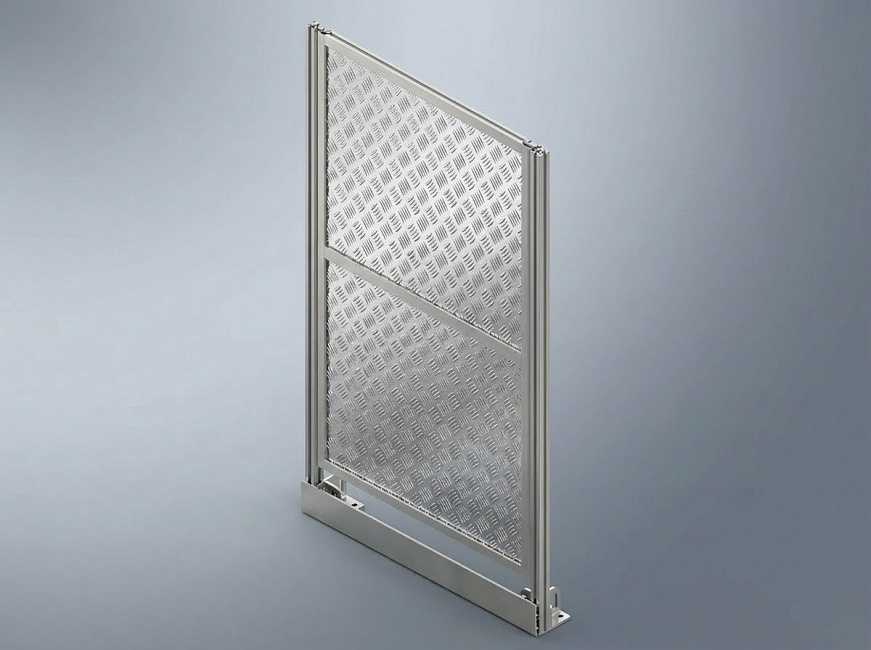 Габарит секции — 1800×920 мм, вставка выполнена из алюминиевого листа. Лист имеет характерный рисунок, придающий изделию аккуратный внешний вид. Материал легкий, но прочный. Секция предназначена для сборки крупноформатных конструкций.