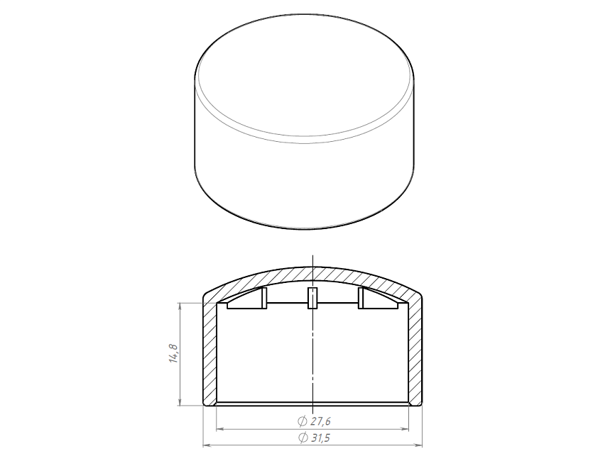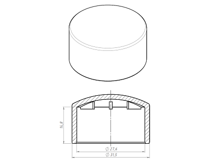 Накладная торцевая заглушка диаметром D28 мм используется в конструкции трубной системы для закрытия торцов труб.