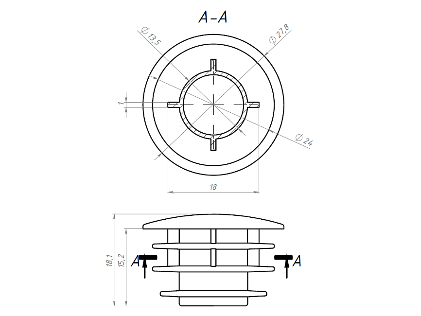 Торцевая заглушка диаметром D28 мм тип 2 используется в конструкции трубной системы для закрытия торцов труб.