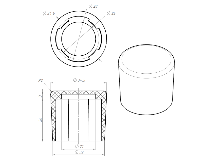 Торцевой наконечник для трубного профиля Ф28 обеспечивает защиту конца профиля, предотвращая возможные повреждения и улучшая внешний вид конструкции.