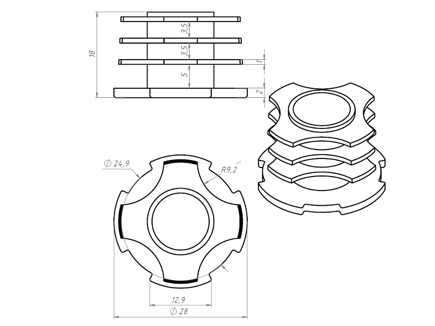 Торцевая заглушка для трубного профиля Ф28 обеспечивает закрытие конца профиля, придавая готовой конструкции завершенный и профессиональный вид.