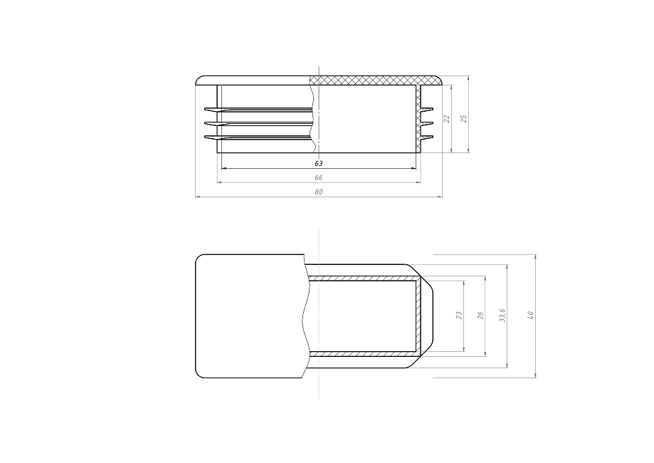 Подходит к профиль алюминиевый, прямоугольник 40x80x3 (Без покрытия)